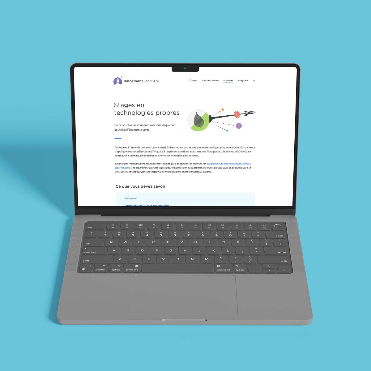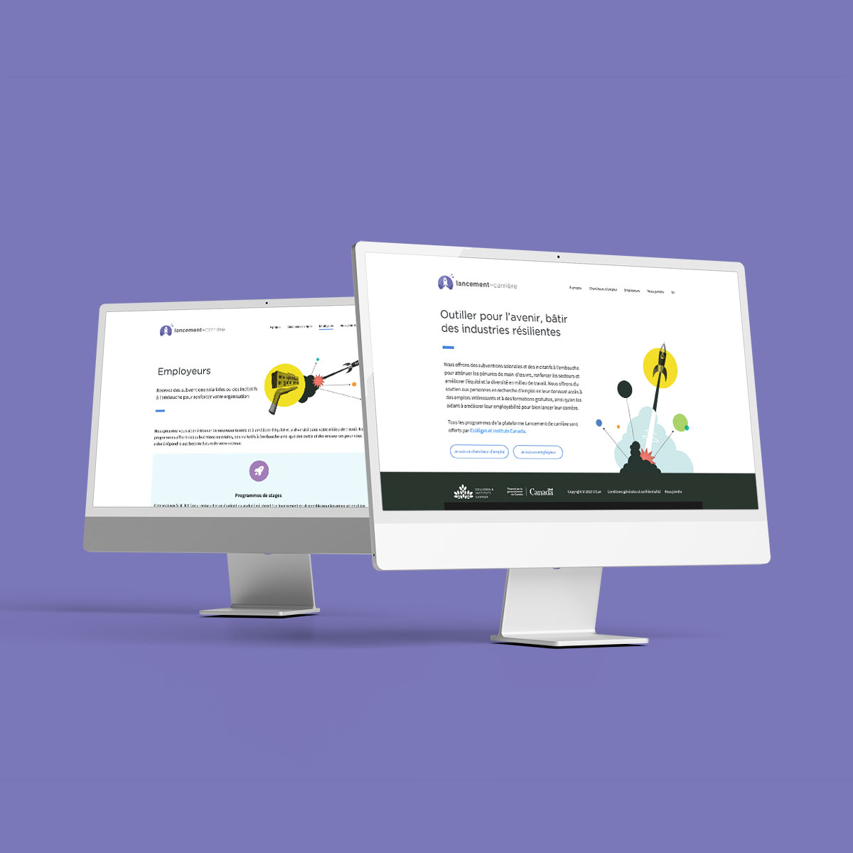 Lancement de carrière est un programme national qui met en relation les employeurs et les jeunes professionnel(le)s par le biais de subventions salariales et de stages rémunérés, ce qui permet de remédier aux pénuries de main-d’œuvre et de soutenir des lieux de travail plus équitables et plus diversifiés. Nous avons rafraîchi l’identité visuelle du programme pour mieux attirer l’attention des étudiant(e)s et des employeurs, en trouvant un équilibre entre le professionnalisme, la clarté et l’accessibilité. Nous avons étudié les flux de travail internes et recommandé WizeHive comme système dorsal pour gérer plus efficacement les demandes, les données des employeurs et les processus de paiement.